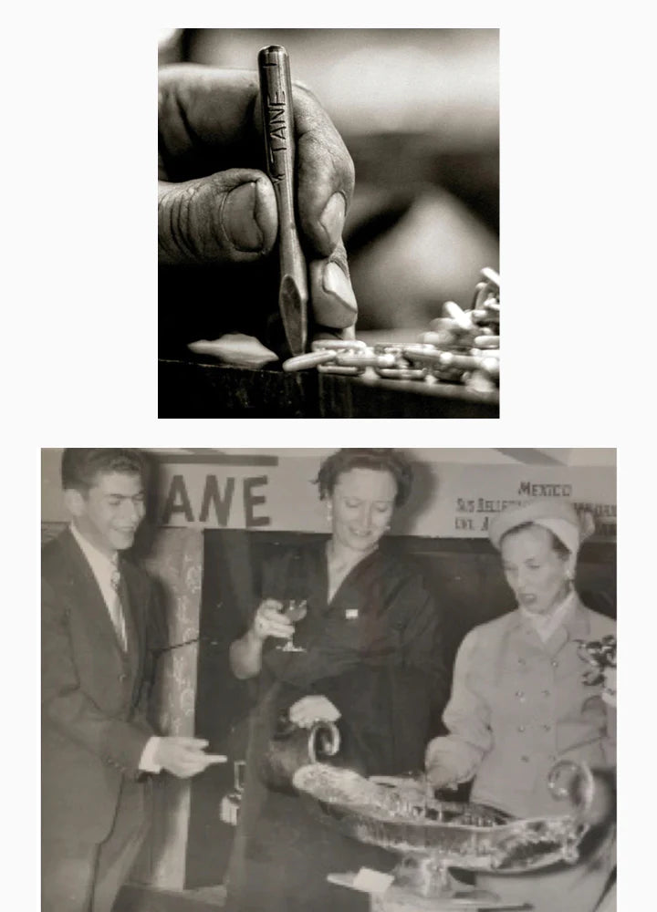 Founded in Mexico City in 1942, TANE is famous for its clean designs and contemporary collections of jewelry, Objects d´Art and Casa TANE — all meticulously crafted in accordance with age-old artisanal processes inside the company's proprietary workshops in Mexico.