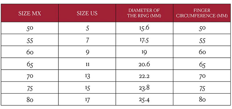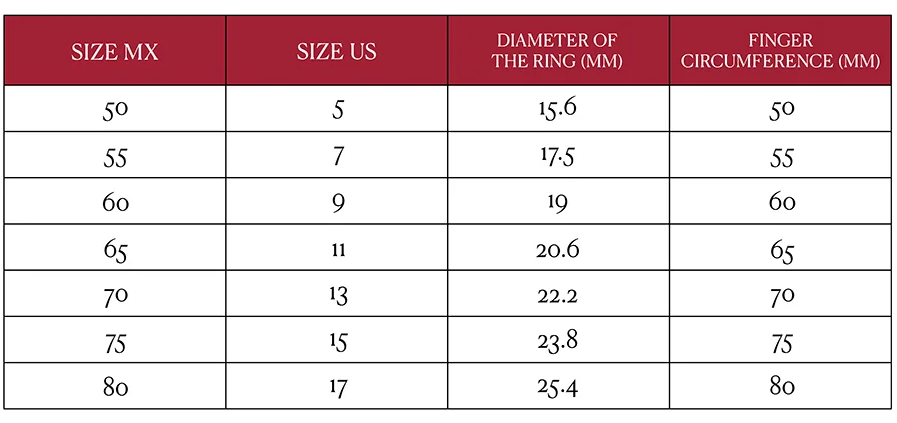5.- Find your ring size in the table below.