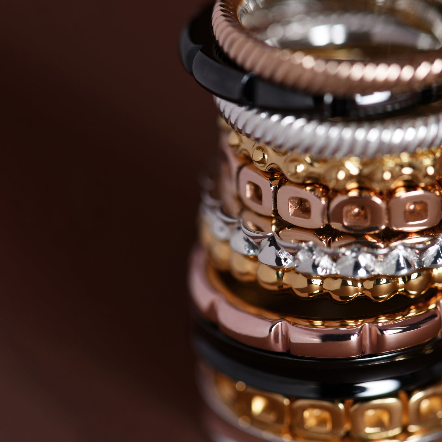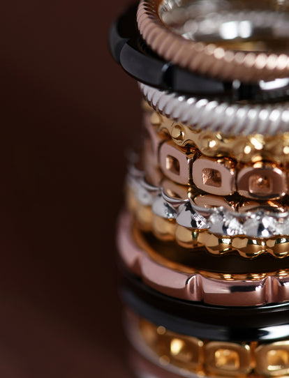 A series of bar partitions creates the texture of the ring which was delicately shaped by TANE's skilled artisans, honoring the flavors of chocolate and the patterns of the traditional Mexican "molinillo" (wooden whisk), two essential elements in Mexican cuisine.The rings from the Xocolate by TANE collection are perfect for mixing and stacking, allowing your collection to become a series of possibilities as vast and unique as your personality.